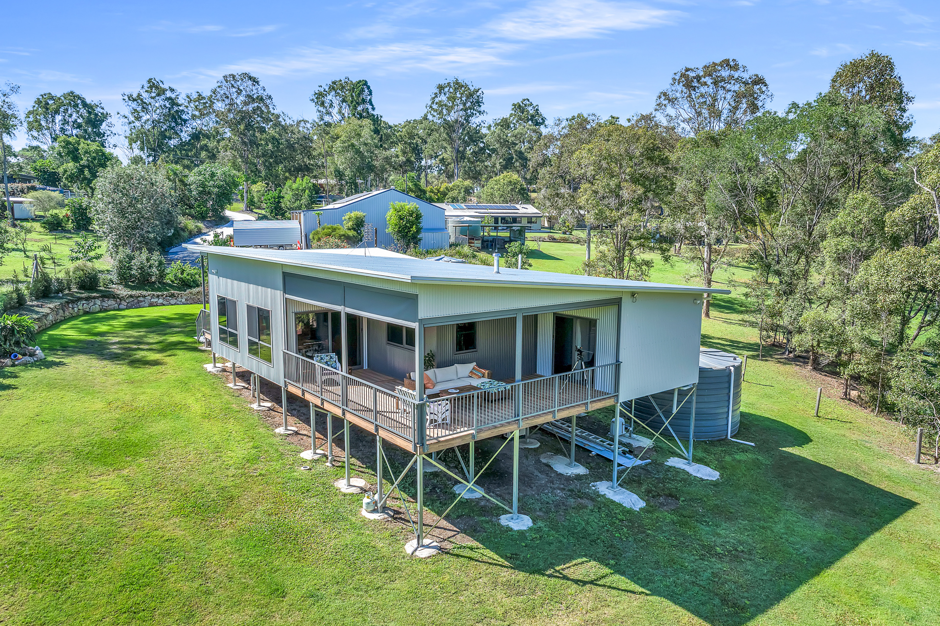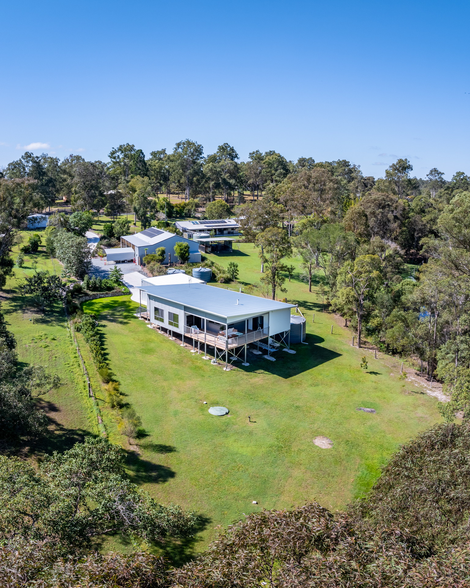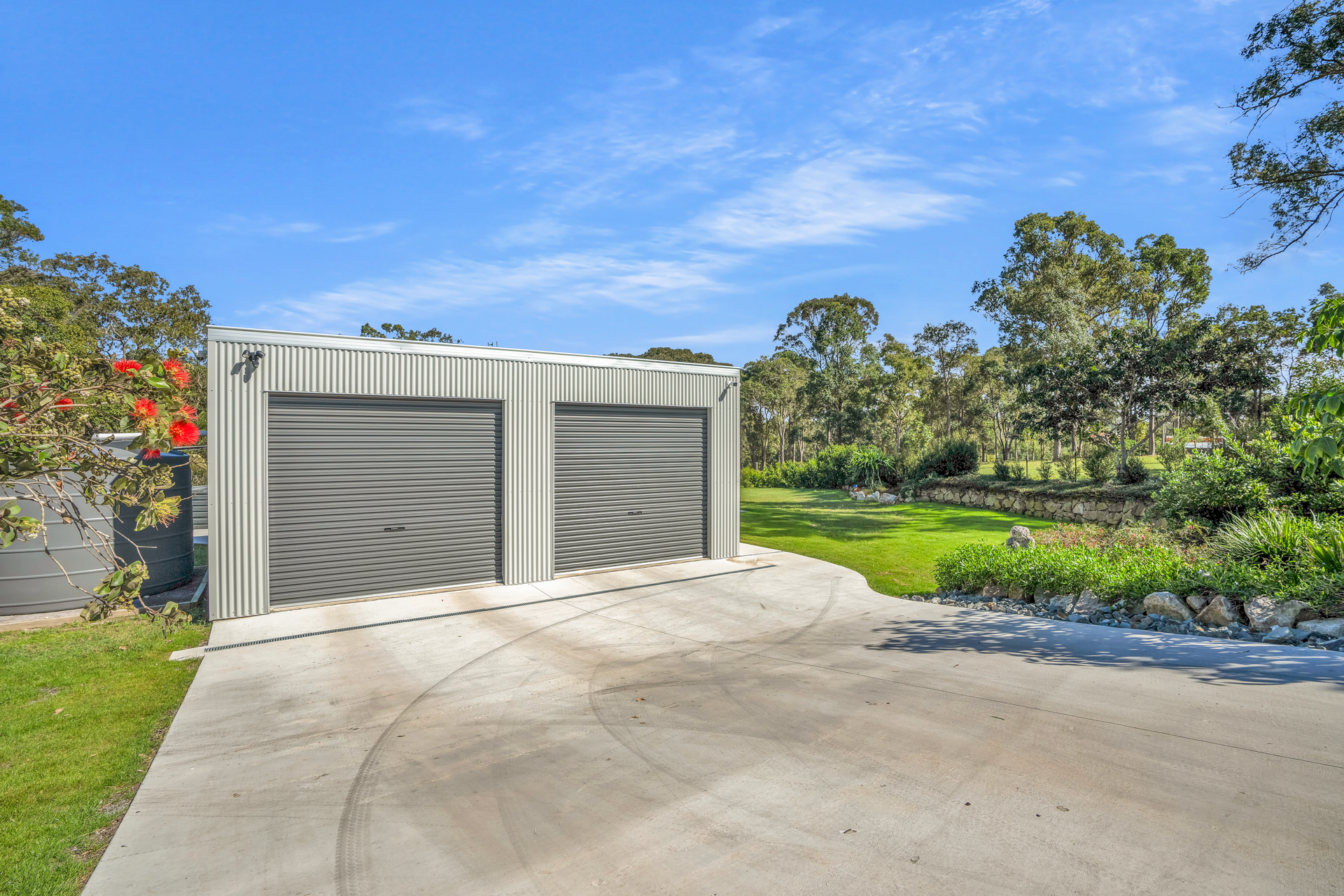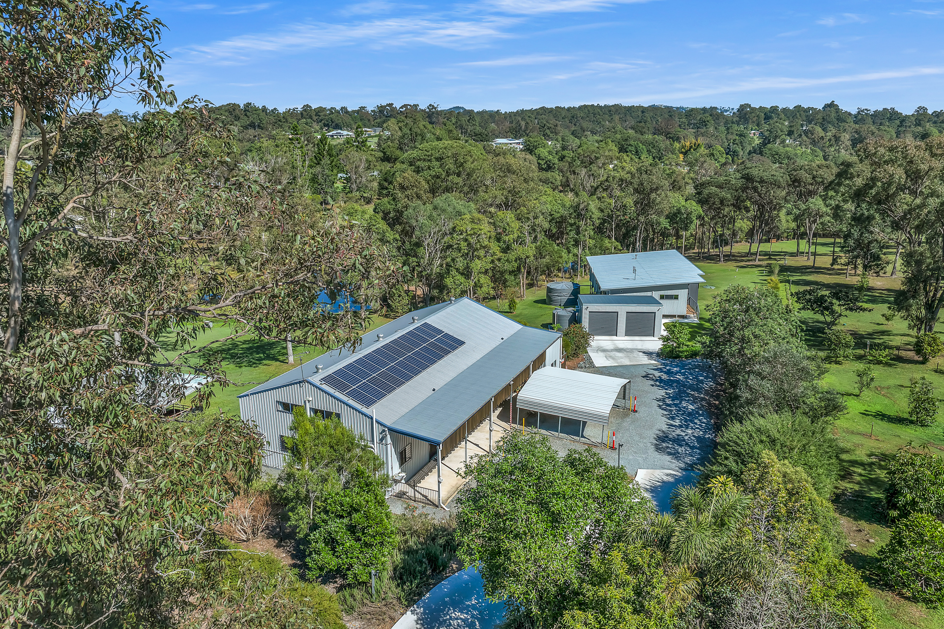 2 x 23,000ltrs rainwater storage, 5.6 Kw solar system, plenty of hard-stand area, 2 car portable carport -