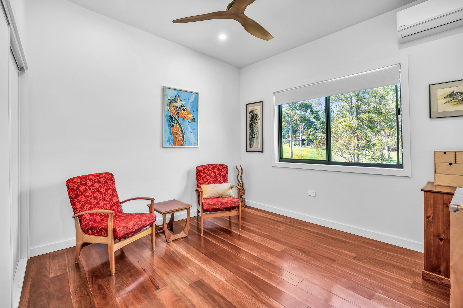 A/C, ceiling fan and opens onto back veranda -