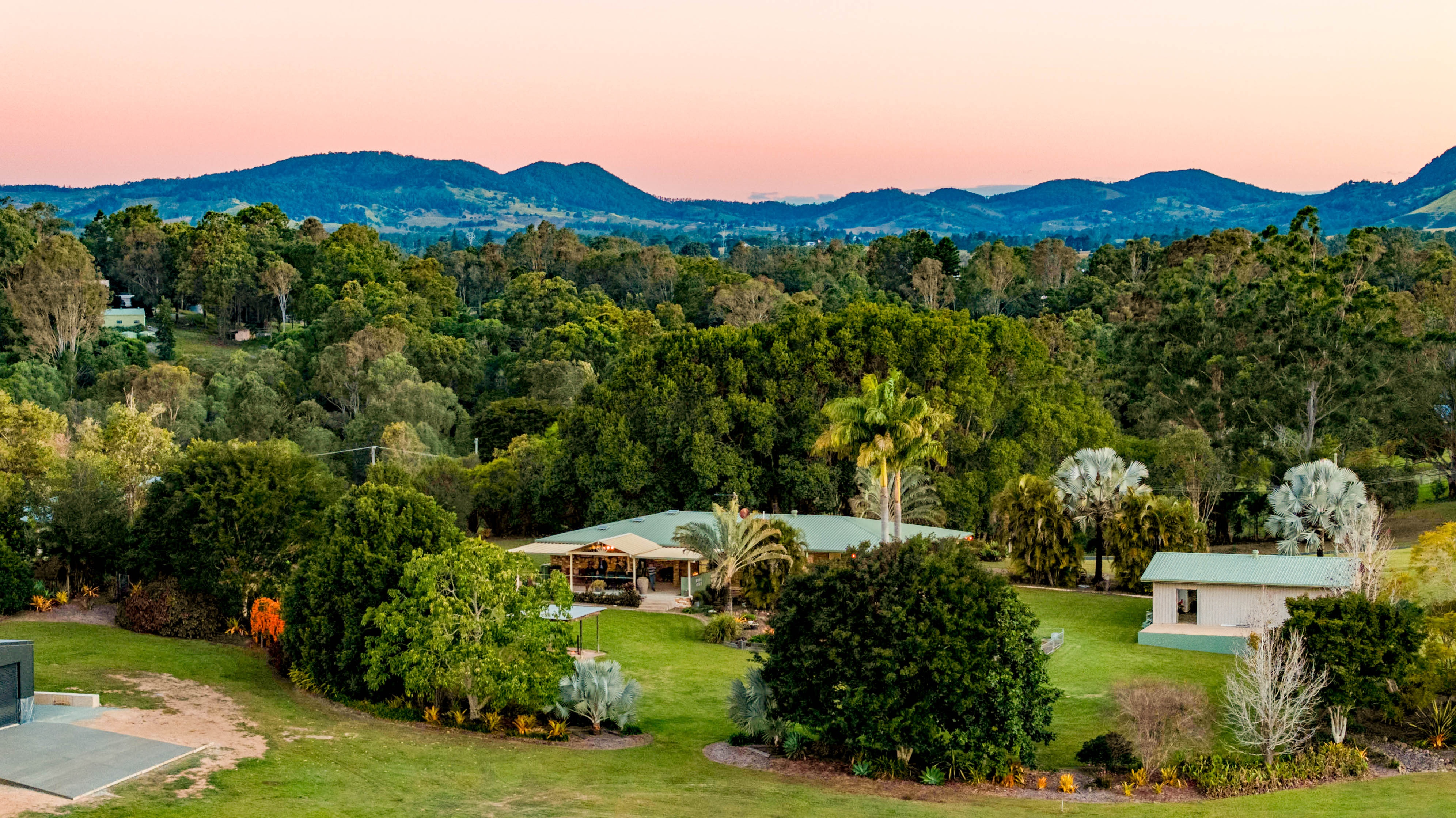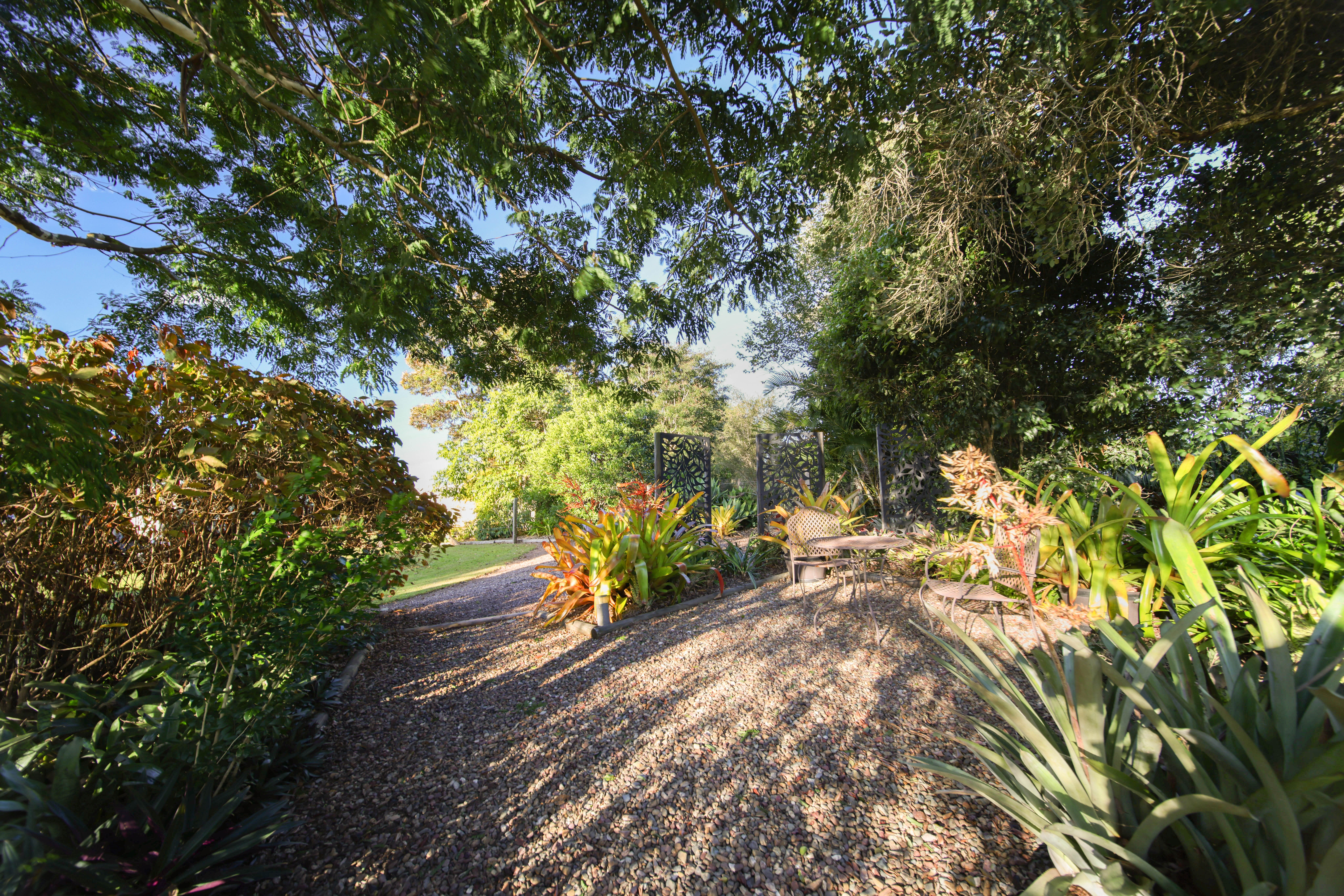 The verdant greenery and lush lawns form an oasis outdoors alongside the front and rear verandahs, expansive entertaining terrace, outdoor kitchen, cooking spit, firepit and garden seating areas, where you can unwind and entertain while enjoying the sounds of birds and outlooks over the visiting wildlife.