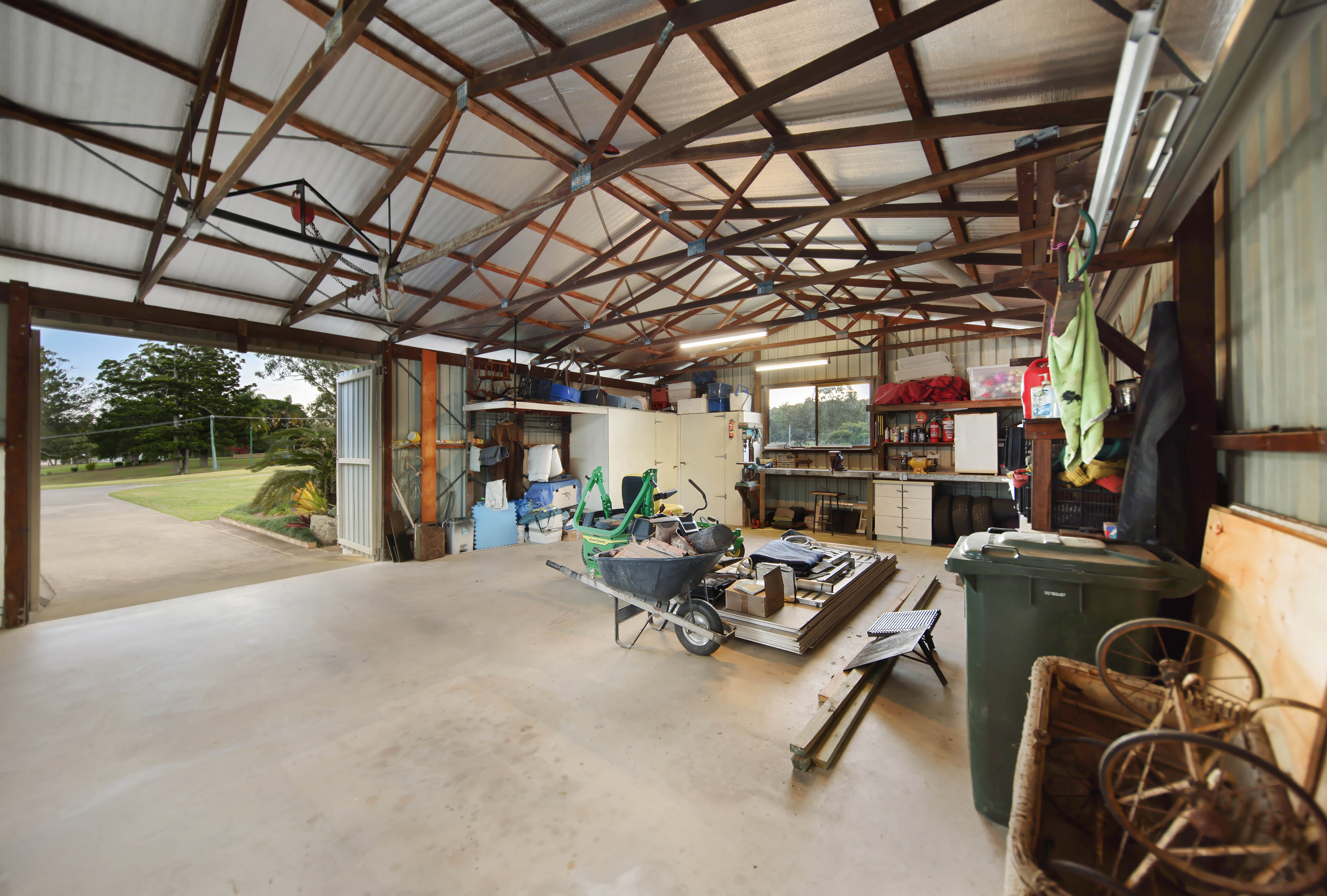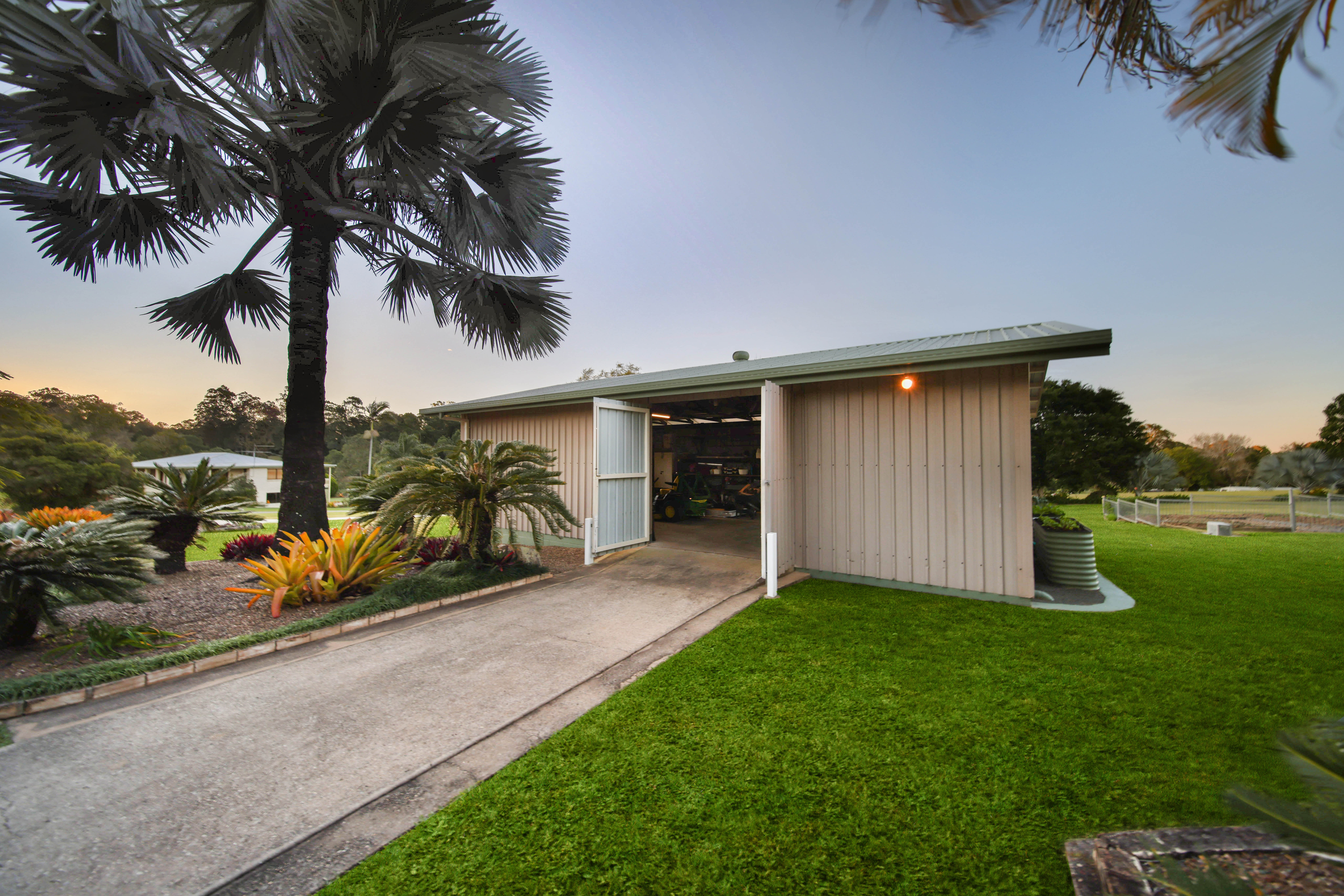 Property features: - 11.4 x 5m undercover entertaining area with an outdoor kitchen featuring a gas BBQ and bar fridge - Front and rear verandahs and garden seating areas - Firepit area surrounded by sandstone seating - Hut featuring a rustic bar, cooking spit and camp oven - Fenced vegetable gardens - Tandem carport - Fully concrete and powered hardwood framed 11 x 7m shed with shelving, insulated ceilings and whirly birds - 11 x 3.5m concrete slab next to the shed with stirrups ready for an extension, if required - Bitumen frontage and concrete driveway - 27,000-gallon rainwater storage