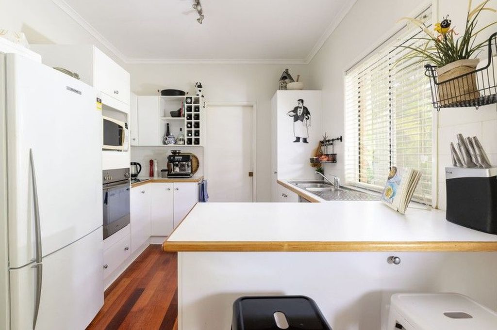 Lovely functional kitchen with loads of storage and direct access through from the garage, equipped with wall mounted oven and electric cook-top, looking to the backyard and opening up to the dining area. -