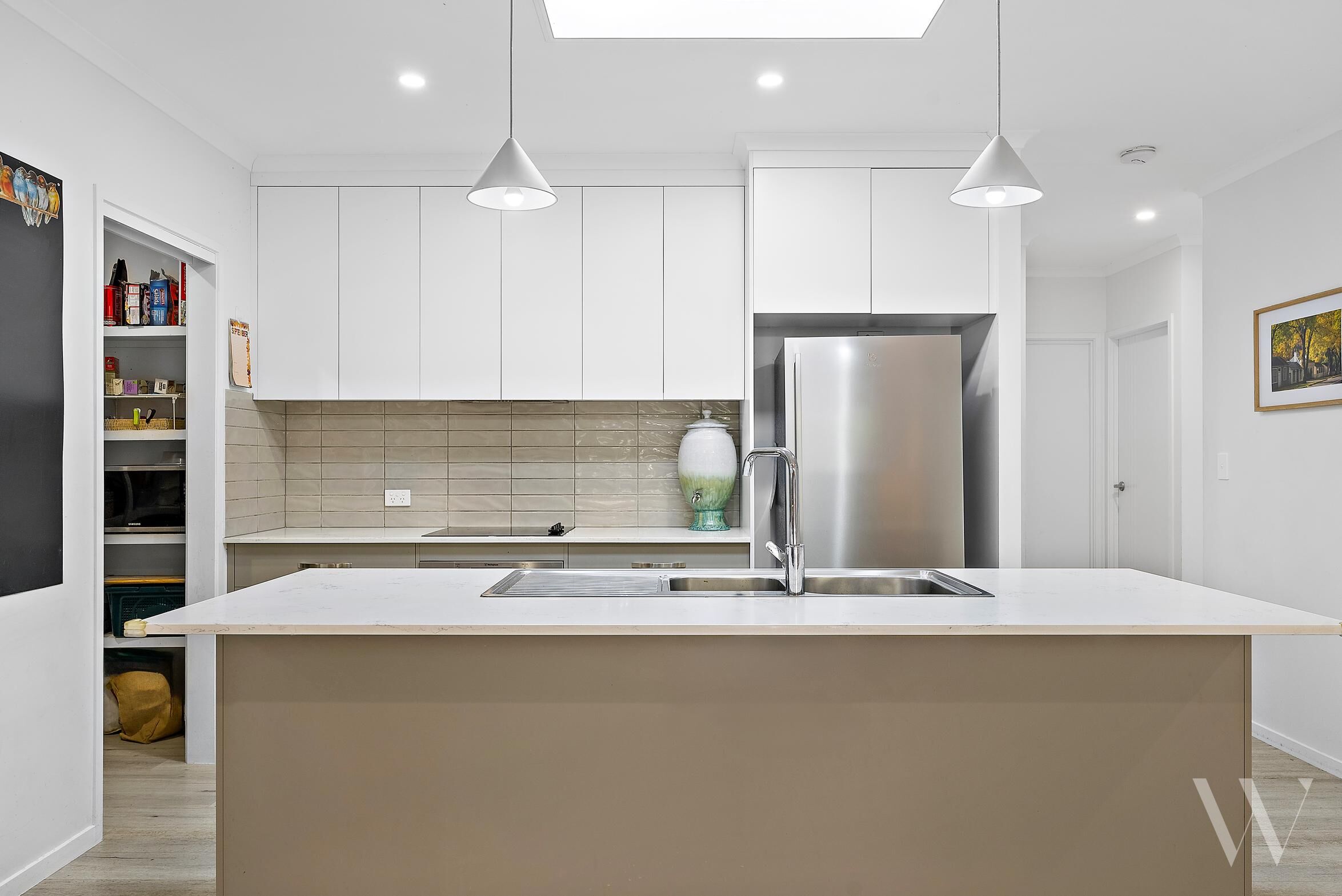A chef's delight, showcasing high-quality appliances, sleek Caesarstone benchtops, and a spacious walk-in pantry that offers ample storage and functionality. • Step outside to the inviting alfresco area, ideal for outdoor dining and gatherings while enjoying the sunshine. • A generously sized backyard that is fully fenced, providing a safe and secure environment for children and pets to play, with convenient side access for easy entry. • A double lock-up garage, equipped with a remote electric door, ensuring easy access and added security for your vehicles.
